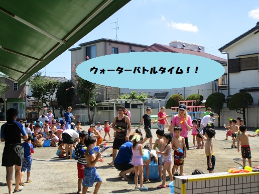 そして、2日目は毎年恒例の水遊び!!ヴァンテージの先生も角栄幼稚園の職員も子ども達も、みんなびしょ濡れに