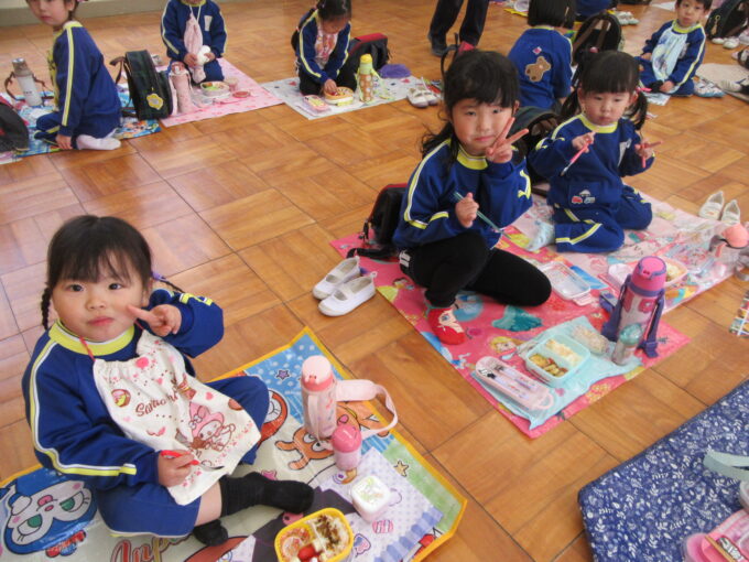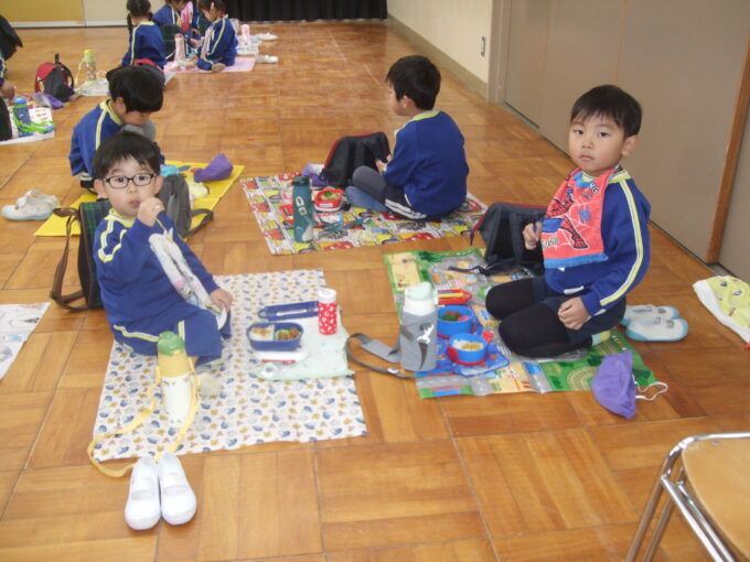 今日は、楽しいお弁当の日。ほし組さんと年中さんと一緒に食べました。年中さんはここでもお兄さんお姉さんを発揮。ほし組さんのお弁当の準備やお片付けのお手伝いをしてくれました。