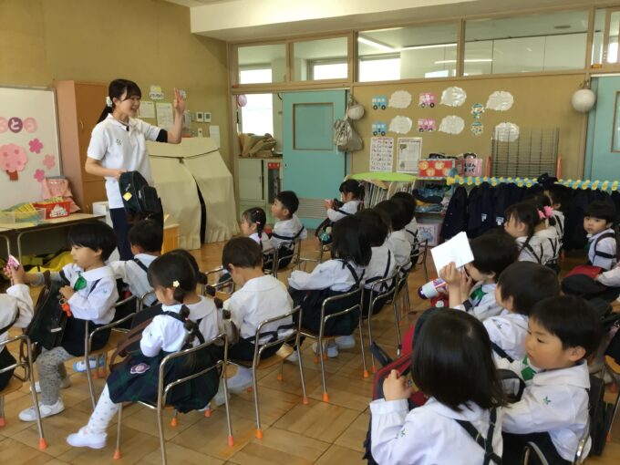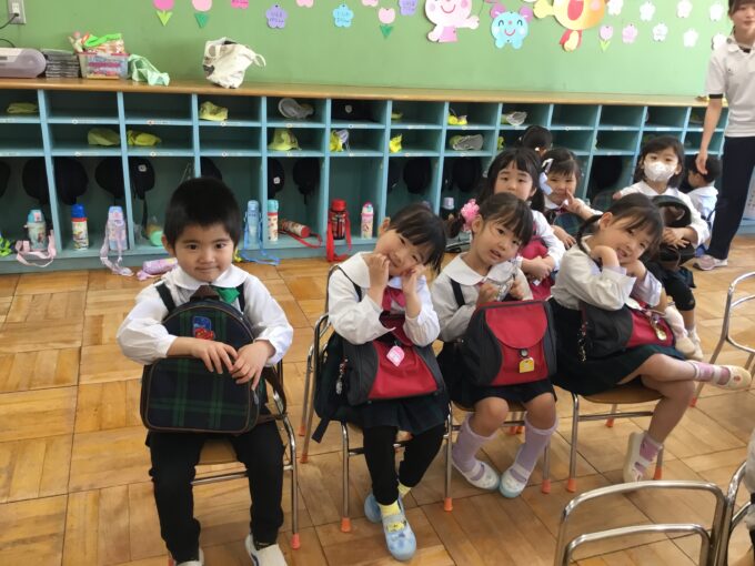 新しいお部屋で先生のお話を聞き、「これから1年間よろしくね」のご挨拶もしました。