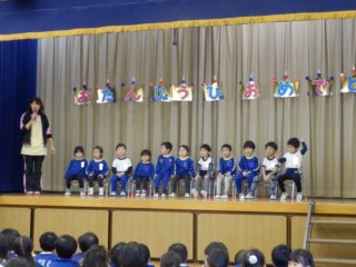 さすが、一つ大きくなったお友達。ステージの上でビシッと座ってお話を聞いていました。先生のインタビューにも元気よく答えていました。