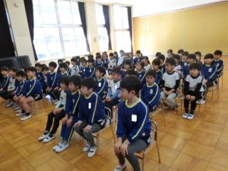 2月も中旬。本格的な暖かな春が待ち遠しいですね。いよいよ年長さんは卒園に向けて動きだしました。今日から卒園式の練習の開始です。楽しい園生活の最後の日は立派な姿で式に参加します。練習初日は、先生から立っている時や座っている時の正しい姿勢の保ち方を教えてもらいました。