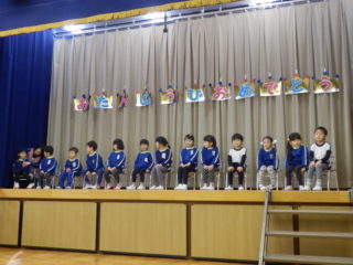 2月生まれのお友達お誕生日おめでとうございます。インタビューされて自分の名前と年を言うのもすっかり定着。年長さんも英語でのインタビューもすっかり定着。友達の発表も上手に聞いていました。