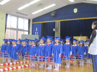 今日は卒園式の予行練習を行いました。角帽をかぶり、ガウンを着ると子どもたちは自然と表情がりりしくなり、良い緊張感を持って参加していました。頑張っている年長組のお兄さん、お姉さんの姿を年中組と年少組の子どもたちはじっと見つめていました。卒園までの園生活を大切に過ごしていきたいと思います。