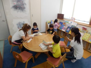 最後は、紙芝居を読んでもらいました。大好きなお母さんのお話に身を乗り出していました。この場所は、園庭開放や、降園後のお遊びの際も親子で一緒にご利用いただけます。是非、お越しください。