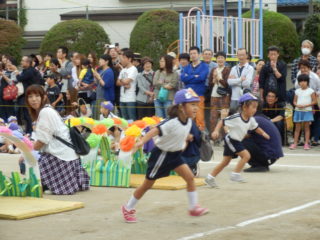 幼稚園最後の運動会の年長組。どの競技も真剣に取り組む姿が見られました。また、リレーはお客様の熱い声援により子ども達の力が最大となり見ごたえあるレースでした。今年度もケガなく無事に終えることができました。保護者の皆様・ご来賓の方々本日はお越しいただきありがとうございました。また、運動会の係としてお手伝いくださいました保護者の皆様ありがとうございました。