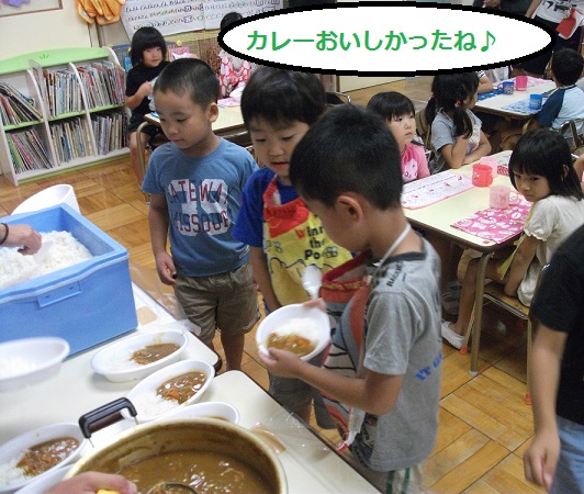 ジブリ美術館へ行ったり、すいかわりなどして過ごしていくうちに緊張もとけ、夕食の先生特製カレーを食べるときにはとびっきりの笑顔が見られるようになってました。その後、幼稚園全部を使って園内かくれんぼをしたり、お遊戯室にみんなで布団を敷いて寝たり、幼稚園生活最後の夏に大好きなお友達や先生と最高の思い出ができました。帰るときには、「もっとおとまり保育したいな」なんて言っている子もいました。