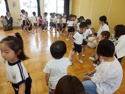 初めて幼稚園におとまりということで、楽しみな反面ドキドキしていた子ども達。