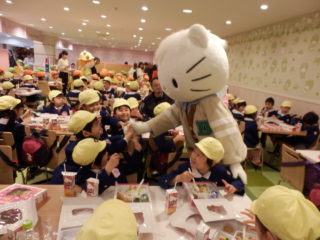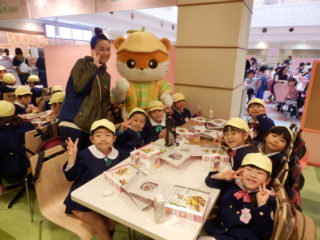 キティちゃん弁当を食べているところに、ダニエルくん達が遊びに来てくれて「握手してくれたぁ」と大興奮でした。