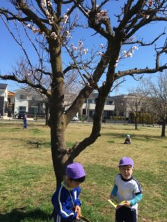 「わー!!ひろーい」「こっちにおいでよ~!」大きい広場に大喜び!!みんなで年少最後の園外保育。バスに乗り中央公園へ行ってきました。
