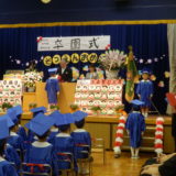 そして、今年度で退職される先生方へ感謝の気持ちをこめて、保護者代表の方から花束の贈呈。子ども達からも「ありがとうございました。」と元気よくご挨拶できました。今年度も保護者の皆様のご理解とご協力のおかげをもちまして無事に修了することができました。たくさんのご協力をいただきましたこと、心より感謝申し上げます。