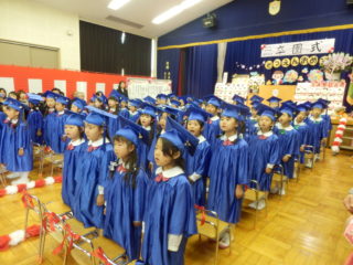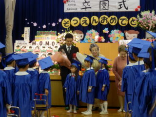 一人ひとり園長先生から卒園証書をもらうことができました。ステージに上がる子ども達は皆、立派でした。
