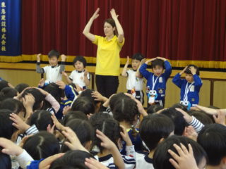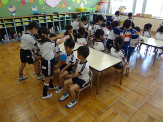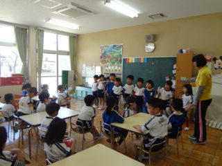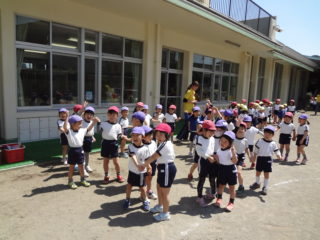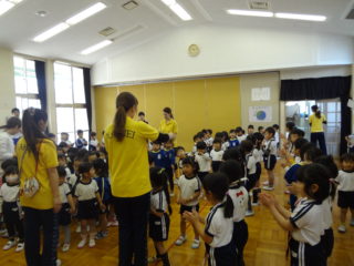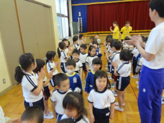 角栄幼稚園のお友達が初めて全員おゆぎ室に集まりました。今日は対面式。「よろしくね」のご挨拶をみんなでしました。