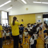 英語の後は体操の時間です。体操の先生とリズム体操。今日は、テレビでお馴染みの「わ~お!」の体操をしました。