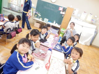 お部屋でも先生やお友達からのインタビュータイムやおやつを食べて楽しいひと時を過ごしました。
