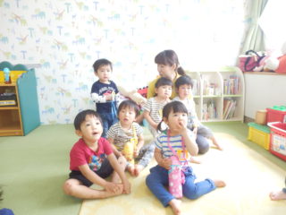 連休明けの5月より、2歳おあずかり教室「おひさまくらぶ」がスタートしました。人生で初めて大好きなお家の人と離れての生活に涙、涙のスタートとなりましたが、やさしく寄り添う先生に興味を示したり、すきな絵本を眺めて過ごしました。