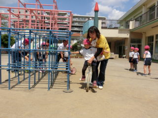先週の金曜日と2週にわたり、一輪車体験を行いました。初めて乗る子も多かったので運転手さんにも支えてもらいながら乗ってみました。