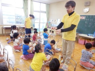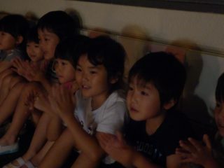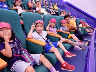 今年も年長さん恒例、おとまり保育が7月22日(月)、22日(火)の2日間で行われました。はじめてお家の人と離れての生活にドキドキしている子もいましたが、朝の集いの後、1番めのお楽しみ、「多摩六都科学館」へ出発すると気分は一気に上昇!見たり、触れたり、感じたり楽しいことだらけでした。プラネタリウムの大きなドーム型の室内にも大興奮でした。