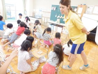 ご飯前には、ビンゴゲーム大会!ヘザー先生、ブランドン先生のひいたカードに釘づけでビンゴめざして真剣にカードを見つめていました。