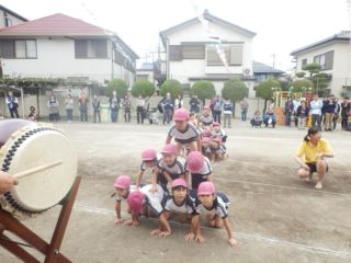 年長さんは、最後の運動会。一つ一つに真剣な表情で取り組んでいました。かっこよく技が決まった組体操や、心を一つに頑張った鼓笛など、どれも素晴らしかったです。