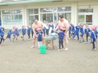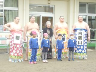 高田川部屋の皆様、柏さくら幼稚園の染谷先生、今日は子ども達のためにお越しいただき本当にありがとうございました。そして、おもちつきの係のお母さま、ボランティアのお父様に多くのご協力をいただきました。ありがとうございました。