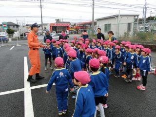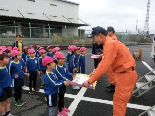 園外保育の日は雨が降ってしまうことが多かった年長組ですが、11月には消防署に行ってきました。
