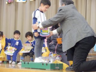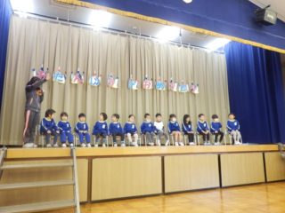 園長先生からプレゼントをもらって、先生からの出し物のクイズに答えました。在園のお友達からお祝いしてもらうことはできませんでしたが、一日も早い収束を願いながら感染予防に努めていきたいものですね。