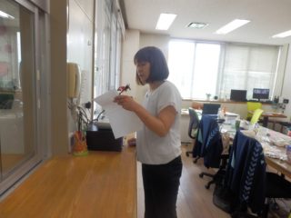 園長先生のお話は放送で行われました。幼稚園で元気に過ごすために,「3つのお約束」のお話をしてくれました。みんな間隔を空けて椅子に座り,静かにお話を聞くことができました。