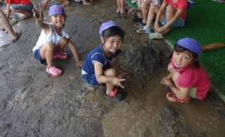 年長さんは,泥んこ遊び。じっくり遊びこむところはさすが年長さんです。