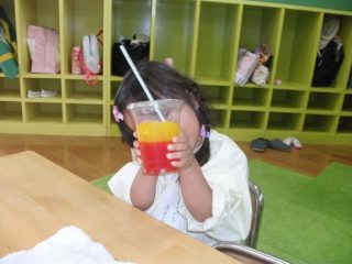 みんなで「かんぱ~い!」として今日は,おしまいです。次回は9月23日(水)新聞を使ってリズム遊びをします。参加してみたい方は,お気軽にお電話下さい。お待ちしております。