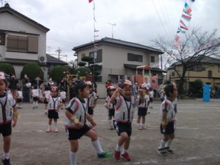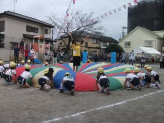 年中組は和太鼓とパラバルーンとかけっこです。みんなで一緒に行う楽しさを十分に感じていました。
