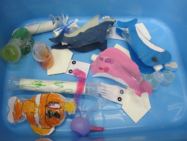 お店屋さんのときは、大きな声で「いらっしゃいませー!!」と一生懸命お客さんに呼びかけていた子ども達。店員さんになりきってお客さんに対応していたり、レジを使ってみたり、買ってくれたお客さんに「ありがとうございました」と言っていたり、普段保護者の方とお買いものに行ったときによく見ているんですね。なりきっている姿が、とってもかわいかったです。