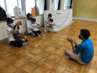 2学期になって初めてのエンジェルクラブを9月8日(水)に行いました。久しぶりに幼稚園に来たお友だちはちょっぴり緊張した様子でしたが,ホセ先生との英語遊びを楽しみました。