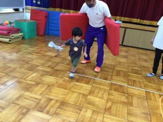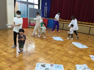 最後は,新聞をびりびり破いて新聞プールで泳ぎました。新聞プールの中に宝のボールを隠して宝探し!「たくさん見つけた!」とみせてくれて,お片付けもとっても上手にできました。