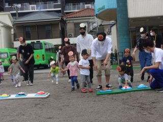 元気にディズニー体操をした後は,かけっこをしました。お土産を目指して頑張って走りました。