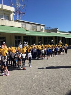 今日は,避難訓練の日でした。子ども達には知らせずに行いましたが,放送を聞いて,落ち着いて園庭に避難してくることができました。