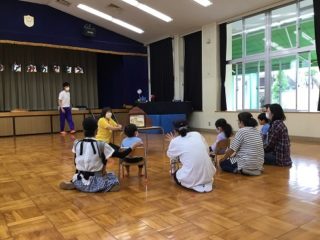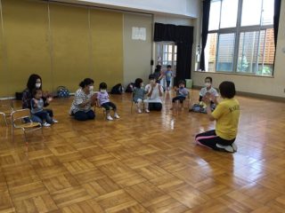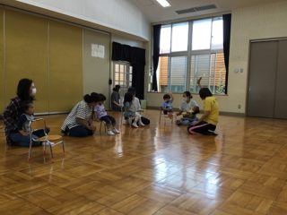 お椅子に座ってお話を聞くのも初めての経験です。みんなで紙芝居をみました。