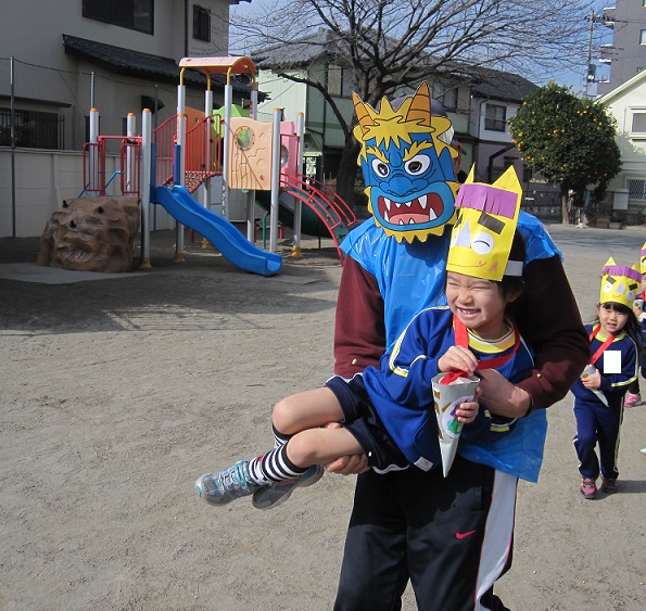 豆まき!活動の記録2014.02.03 今日は節分です。 幼稚園でも豆まきを行いました。 自分たちが作ったお面をつけ、三方を持ち、鬼が待っている園庭に出陣!! 鬼に(運転手さんや英語の先生が鬼に変身してくれました)立ち向かっていく頼もしい姿や、怖くて大泣きをする姿・・・と、様々な姿がみられましたが、みんな元気に『おにはーそと!ふくはーうち!!』とお豆をなげていました。 無事に鬼退治もできましたし、今年一年、みんなが健康に過ごせますように・・・☆ カテゴリーごと記事一覧 お知らせ イングリッシュルーム 活動の記録 活動の日記 アーカイブ 活動の日記 アーカイブ 月を選択 2025年12月 2025年11月 2025年10月 2025年9月 2025年8月 2025年7月 2025年6月 2025年5月 2025年4月 2025年3月 2025年2月 2025年1月 2024年12月 2024年11月 2024年10月 2024年9月 2024年8月 2024年7月 2024年6月 2024年5月 2024年4月 2024年3月 2024年2月 2023年12月 2023年11月 2023年10月 2023年9月 2023年8月 2023年7月 2023年6月 2023年5月 2023年4月 2023年3月 2023年2月 2023年1月 2022年12月 2022年11月 2022年10月 2022年9月 2022年8月 2022年7月 2022年6月 2022年5月 2022年4月 2022年3月 2022年2月 2022年1月 2021年12月 2021年11月 2021年10月 2021年9月 2021年8月 2021年7月 2021年6月 2021年4月 2021年3月 2021年2月 2021年1月 2020年12月 2020年11月 2020年10月 2020年9月 2020年8月 2020年7月 2020年6月 2020年5月 2020年4月 2020年3月 2020年2月 2020年1月 2019年12月 2019年11月 2019年10月 2019年9月 2019年8月 2019年7月 2019年6月 2019年5月 2019年4月 2019年3月 2019年2月 2019年1月 2018年12月 2018年11月 2018年10月 2018年9月 2018年8月 2018年7月 2018年6月 2018年5月 2018年4月 2018年3月 2018年2月 2018年1月 2017年12月 2017年11月 2017年10月 2017年9月 2017年8月 2017年7月 2017年6月 2017年5月 2017年4月 2017年3月 2017年2月 2017年1月 2016年12月 2016年11月 2016年10月 2016年9月 2016年8月 2016年7月 2016年6月 2016年5月 2016年4月 2016年3月 2016年2月 2016年1月 2015年12月 2015年11月 2015年10月 2015年9月 2015年8月 2015年7月 2015年6月 2015年5月 2015年4月 2015年3月 2014年11月 2014年10月 2014年9月 2014年8月 2014年7月 2014年6月 2014年5月 2014年4月 2014年3月 2014年2月 2014年1月 2013年12月 2013年11月 2013年10月 2013年9月 2013年8月 2013年7月 2013年6月 2013年5月 おゆうぎ会♪おゆうぎ会の予行RECOMMEND 活動の記録2017.02.21年少園外保育(智光山公園) 活動の記録2016.07.117月のお誕生日会 活動の記録2018.02.19カウントダウンが始まりました。 活動の記録2019.04.18対面式 活動の記録2016.08.26サマースクール「Space Adventure」 活動の記録2016.07.26おとまり保育(年長組) 活動の記録2017.05.08今日の様子(年長・おひさま) 活動の記録2013.05.10春の遠足に行ってきました(稲荷山公園)
