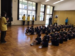 園長先生からは,楽しく幼稚園で過ごすために3つの約束を教えてもらいました。「優しさいっぱい,元気いっぱい,知る喜びいっぱい」のお友だちになろうでした。