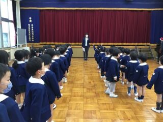 始業式では,一つお兄さんお姉さんになった姿を園長先生にしっかり見せれてくれました。姿勢もかっこよくお話を聞くことができました。