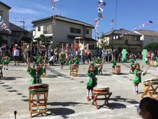 年中さんは,和太鼓とバルーンとかけっこ。たくさんのお客さんの前で真剣な表情で発表していました。