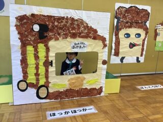 年少さんは「ぱんどろぼう」でした。ほっかほっカーの作品は,乗って写真を撮れるようになっていました。