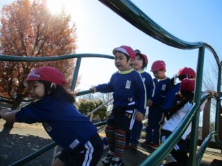 とても広い公園に,ドキドキわくわく。年少さん全員で「だるまさんがころんだ」で遊びました。ピタ!と止まるのもだんだん上手になり,鬼になった子も大きな声でかけ声をかけていました。