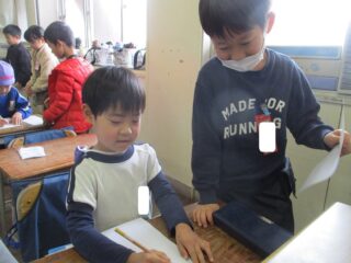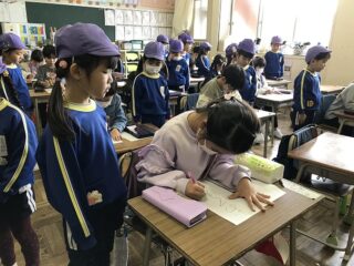 最後に1年生にお礼の手紙を渡しました。みんなで心を込めて折った折り紙つきのお手紙を1年生に渡しました。楽しく学習でき,1年生になるのが楽しみになりました。藤沢東小学校の皆様,本日はありがとうございました。