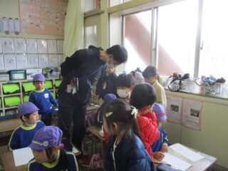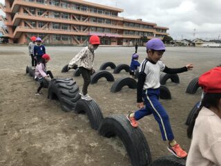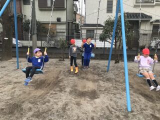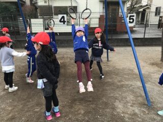 授業の後は,お楽しみの時間。校庭でペアの1年生と遊びました。幼稚園の園庭とは違い広くて大きい遊具にびっくりしましたが,優しく使い方も教えてくれたので楽しく遊べました。