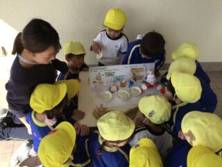 「おもちのできるまで」を先生に教えてもらいながら、もち米からおもちになるまでを実際に手で触れてみることもでき、貴重な時間を過ごしました。