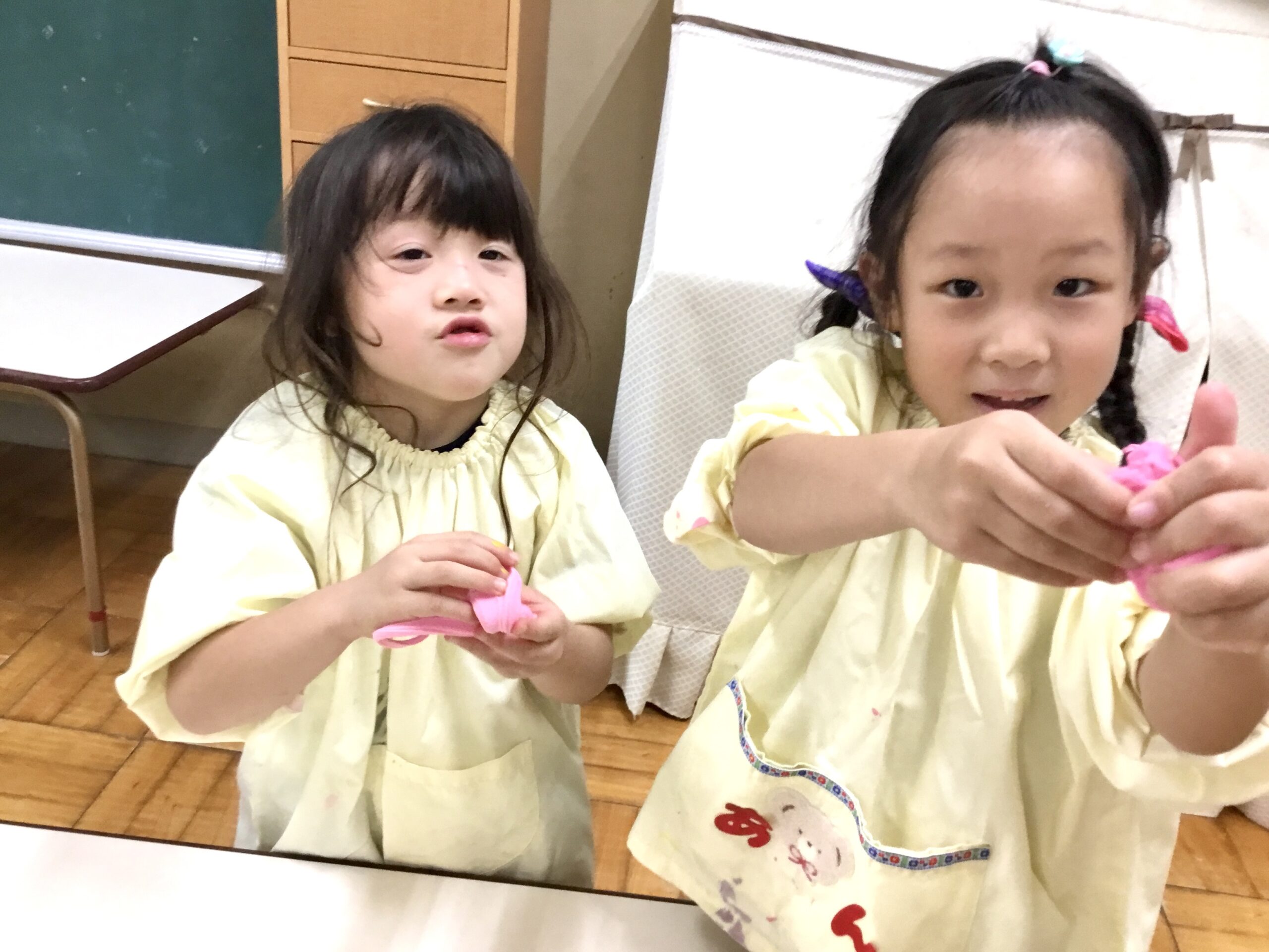 入園当初は時間にゆとりを持って行いますし、できない部分は担任が補助をしますので心配いりません。 また、まわりのお友だちに刺激されて少しずつできるようになっていきます。