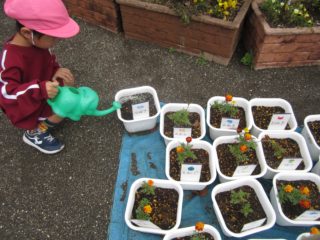 一人一鉢栽培活動の記録2019.07.11 志津わかば幼稚園では、『植物に関心を持ち、大切に育てる』という目当てを持ち、一人一鉢栽培を行っています。年少組は「マリーゴールド」、年中組は「ホウセンカ」、年長組は「ミニヒマワリ」を育てました。 花が咲くことを楽しみに種をまき、毎日大切に水をあげていました。また、芽が出てくると「茎は何色かな?」「葉は何色かな?」とお友達と観察し合う姿があり、大きくなったことを喜んでいました。 ご自宅でも引き続き、生長を楽しみながら育ててみて下さい。 <年少組> <年中組> <年長組> カテゴリーごと記事一覧お知らせ活動の記録ふれあい英語今日の子どもたち(日常の記録)園行事・季節の行事幼稚園後のならいごと2歳児教育わかばブログ アーカイブ わかばブログ アーカイブ 月を選択 2026年1月 2025年12月 2025年11月 2025年10月 2025年9月 2025年8月 2025年7月 2025年6月 2025年5月 2025年4月 2025年3月 2025年2月 2025年1月 2024年12月 2024年11月 2024年10月 2024年9月 2024年8月 2024年7月 2024年6月 2024年5月 2024年4月 2024年3月 2024年2月 2024年1月 2023年12月 2023年11月 2023年10月 2023年9月 2023年8月 2023年7月 2023年6月 2023年5月 2023年4月 2023年3月 2023年2月 2023年1月 2022年12月 2022年11月 2022年10月 2022年9月 2022年8月 2022年7月 2022年6月 2022年5月 2022年4月 2022年3月 2022年2月 2022年1月 2021年12月 2021年11月 2021年10月 2021年9月 2021年8月 2021年7月 2021年6月 2021年5月 2021年4月 2021年3月 2021年2月 2021年1月 2020年12月 2020年11月 2020年10月 2020年9月 2020年8月 2020年7月 2020年6月 2020年4月 2020年3月 2020年2月 2020年1月 2019年12月 2019年11月 2019年10月 2019年9月 2019年8月 2019年7月 2019年6月 2019年5月 2019年4月 2019年3月 2019年2月 2019年1月 2018年12月 2018年11月 2018年10月 2018年9月 2018年8月 2018年7月 2018年6月 2018年5月 2018年4月 2018年3月 2018年2月 2018年1月 2017年12月 2017年11月 2017年10月 2017年9月 2017年8月 2017年7月 2017年6月 2017年5月 2017年4月 2017年3月 2017年2月 2017年1月 2016年12月 2016年11月 2016年10月 2016年9月 2016年8月 2016年7月 2016年6月 2016年5月 2016年4月 2016年3月 2016年2月 2016年1月 2015年12月 2015年11月 2015年10月 2015年9月 2015年8月 2015年7月 2015年6月 2015年5月 2015年4月 2015年3月 2015年2月 2015年1月 2014年12月 2014年11月 2014年10月 2014年9月 2014年8月 2014年7月 2014年6月 2014年5月 2014年4月 2014年3月 2014年2月 2014年1月 2013年12月 2013年11月 2013年10月 2013年9月 2013年8月 2013年7月 2013年6月 2013年5月 2013年4月 1学期終業式わかば祭りRECOMMEND 活動の記録2023.02.22エンジェルくらぶ(2月) 活動の記録2023.11.132歳児親子教室『11月のエンジェルくらぶ』 活動の記録2021.10.042歳児『おひさまくらぶ』【9月の様子】 活動の記録2014.04.15歓迎会 活動の記録2016.10.269月・10月のお誕生会 活動の記録2023.03.17修了式 活動の記録2020.07.14和太鼓練習 活動の記録2024.09.04避難訓練(地震)