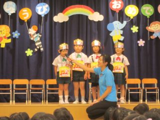 子どもたちは、集中してお話を聞き、お友だちと楽しみながら見ていました。