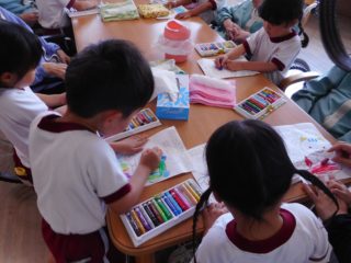 完成したぬりえを渡すと、喜んでもらい、子どもたちも満足そうでした。