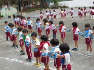 お遊戯は元気いっぱい可愛らしく、バルーンは、みんなで力を合わせて様々な技に挑戦しました。